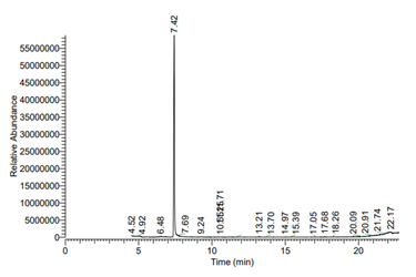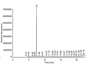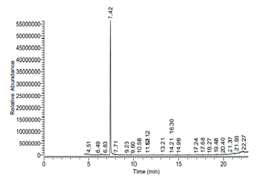 The extracted EOs were evaluated using a GC-MS equipment from Thermo Fisher Scientific in the USA. The instrument featured a GC-Trace 1300, MS-TQS Duo, and Autosampler-TriPlus RSH, connected with a DB-5MS column (length of 40 m, inner diameter of 0.15µm, and film thickness of 0.15µm). For sample preparation, 20 ul of material was dissolved in methanol and the volume was increased to 1 ml using the same solvent, as reported by Van et al. (2022) with minor modifications. Then, 1 ml of EO was injected into the GC-Trace 1300, MS-TQS Duo, and Autosampler-TriPlus RSH, all connected to a DB-5MS column. The fore line pressure temperature was set to 210 oC, the transfer line temperature was 200 oC, and the ionization mode was Electron Impact (EI) at 70 eV. Helium was used as the carrier gas, with an injection volume of 1 µl and an injector temperature of 200 oC. Temperatures varied from 50 oC (held for 5 min) to 210 oC (held for 15 min) during the GC analysis, using a 5 oC/min ramp rate. The mass range for analyte characterization was adjusted to 45–450 (m/z).